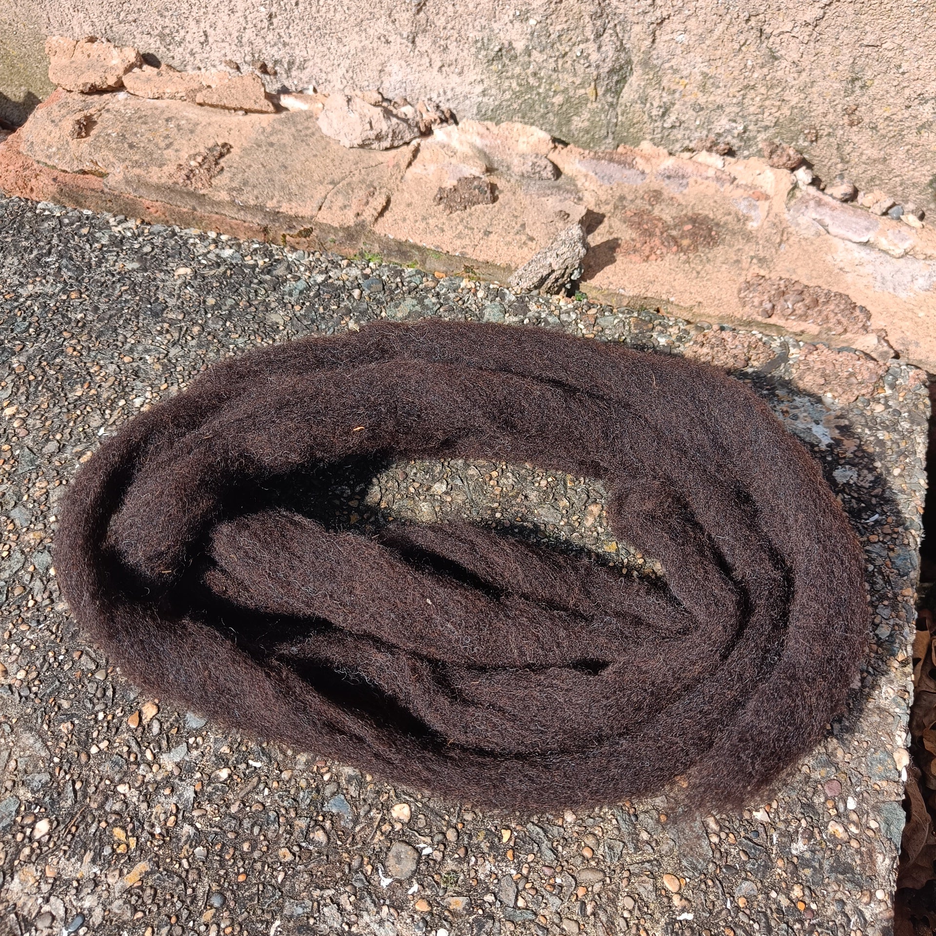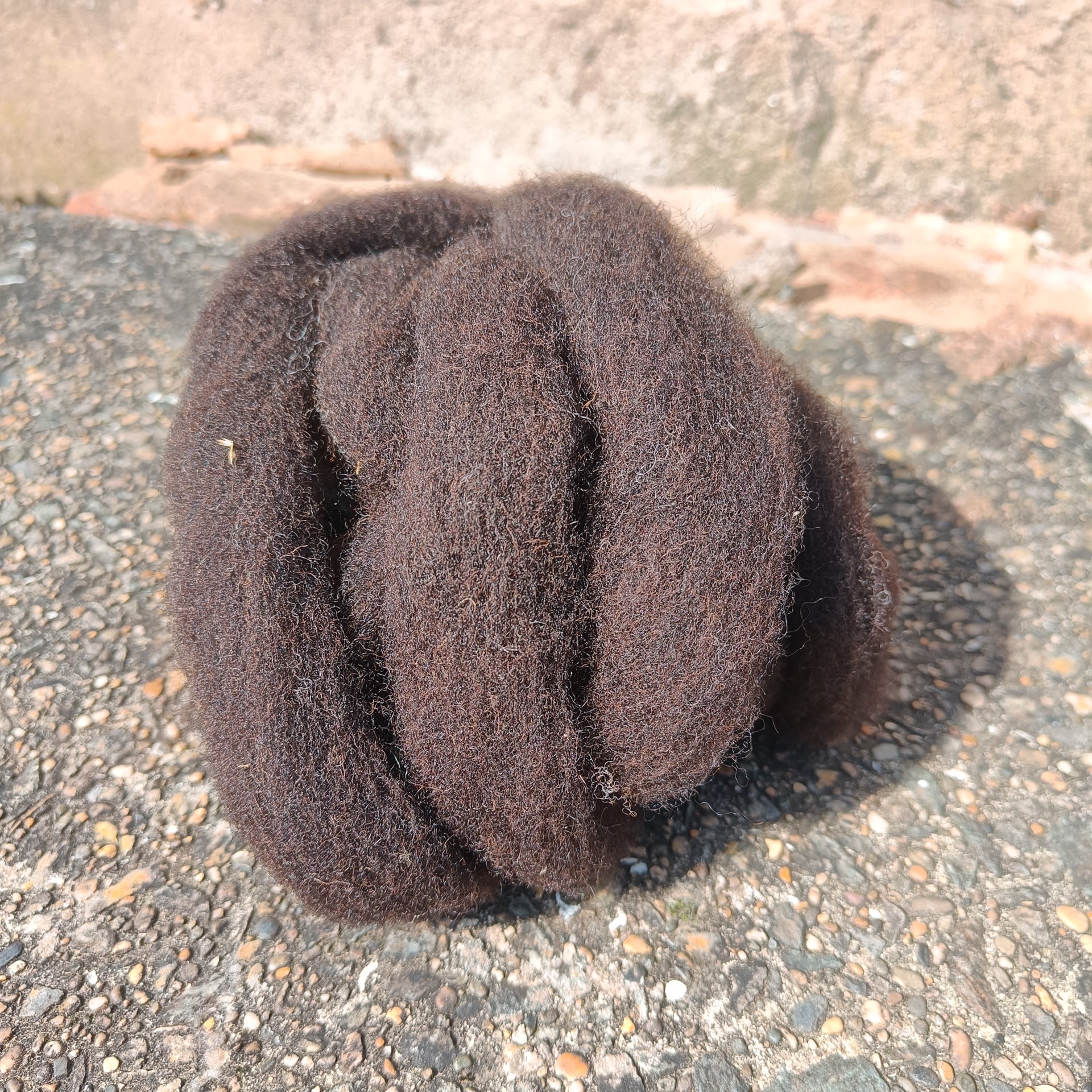 This is a carded sliver from a flock of Black Welsh Mountain ewes in Dorset.